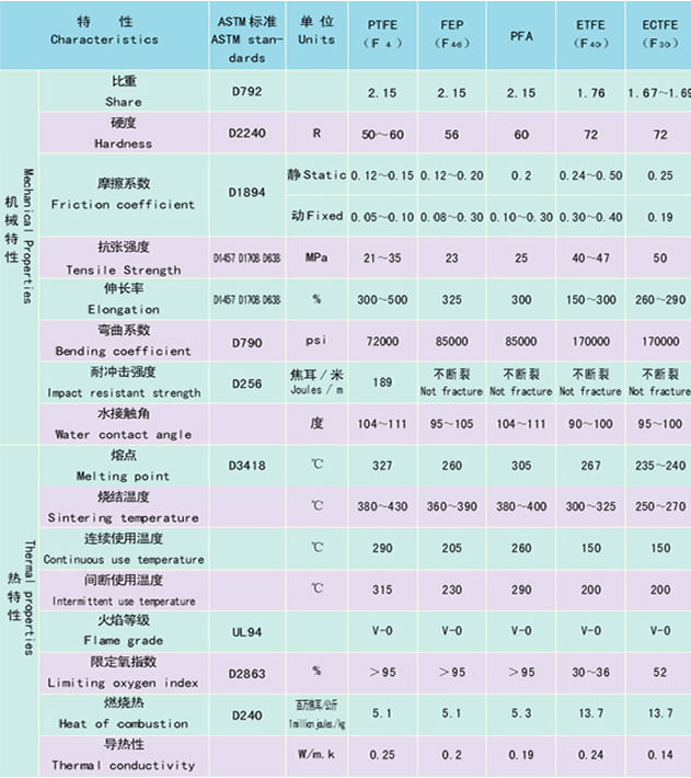 一、氟樹(shù)脂的物理性能數(shù)據(jù)